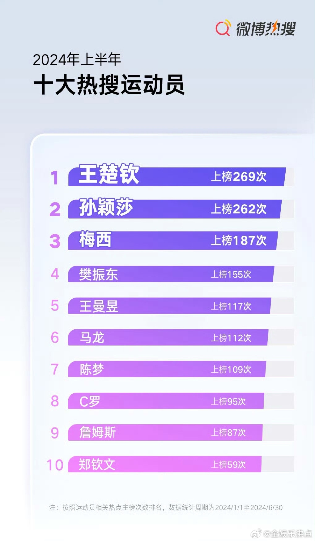 而在此前发布的2024上半年热搜中,还有着梅西C罗和詹姆斯这样的足篮球员。